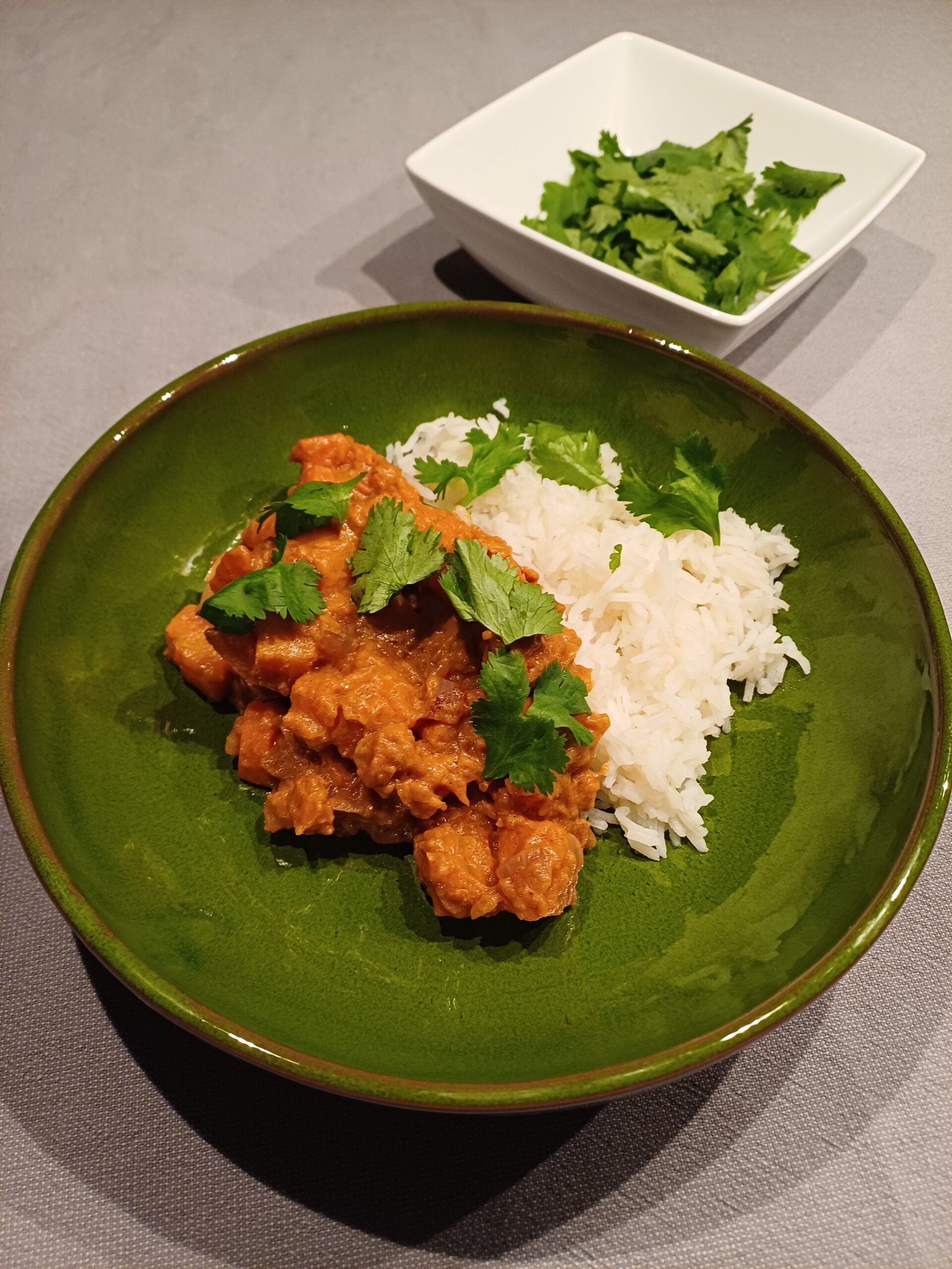 Vegan curry met pompoen en pindakaas
