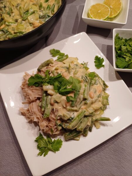 Vegan noedels met groene curry