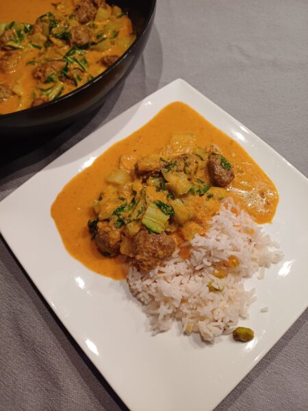 Gestoofde rendang balletjes met paksoi